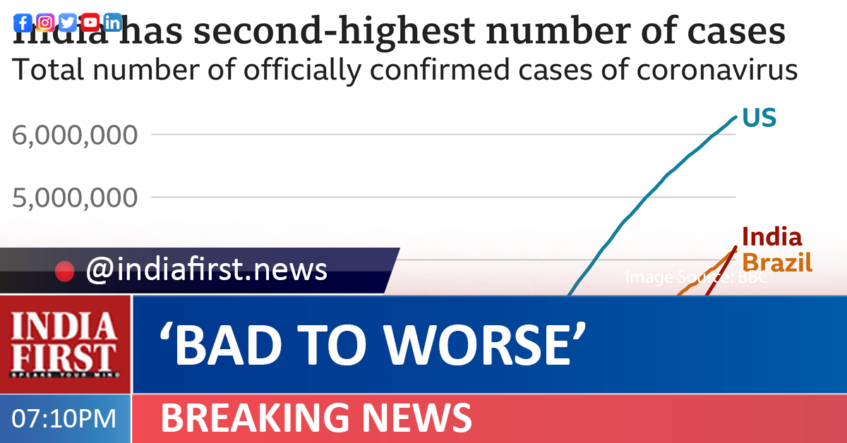 India has overtaken the US to become the country with second-highest daily Covid-19 cases in the world. Brazil leads the chart with 91,097 cases recorded in the last 24 hours.