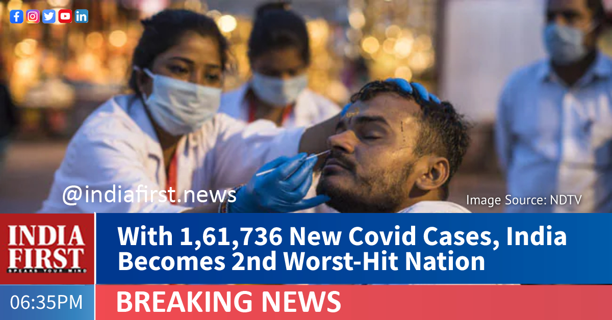 India reported 1,61,736 new Covid-19 cases in the last 24 hours, setting another grim one-day record, taking the overall tally to 1,36,89,453 TODAY, according to data issued by the Union Health Ministry.