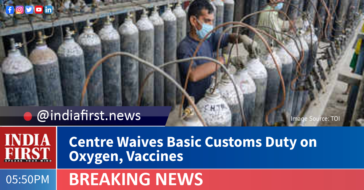 The Union government has decided to grant full exemption from basic customs duty and health cess on import of oxygen and oxygen-related equipment for three months. The government also exempted basic customs duty on import of Covid vaccines with immediate effect for a period of three months.