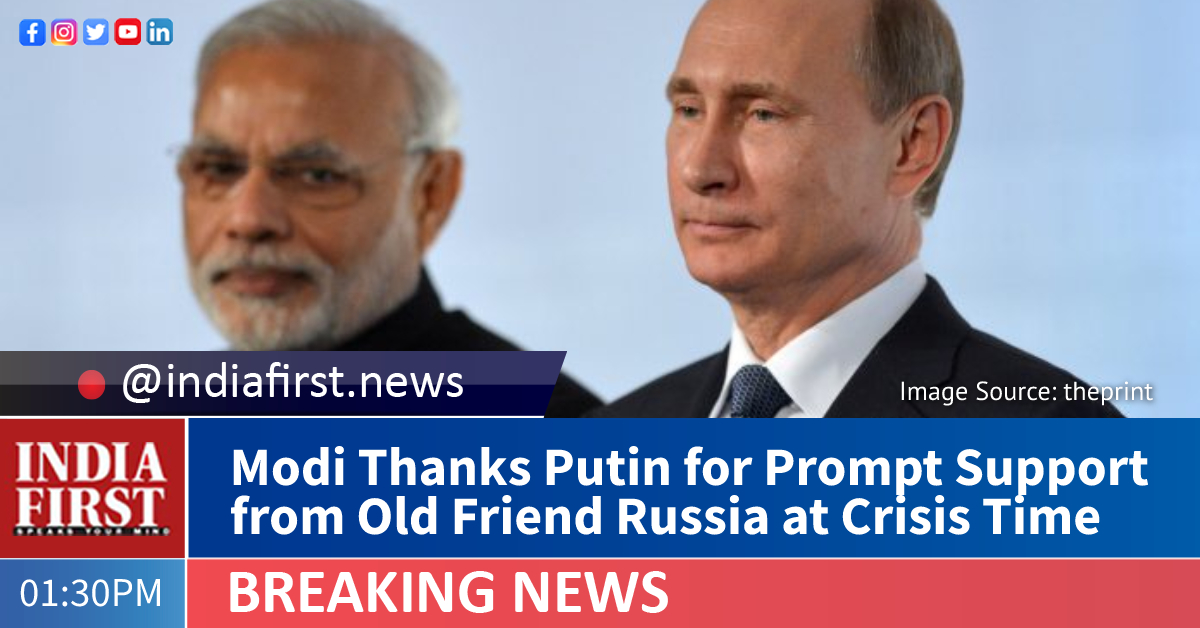 Putin expressed solidarity with the people and the government of India and conveyed that Russia would extend all possible support in this regard. Modi thanked Putin and noted that the prompt Russian support to India was a symbol of the countries’ enduring partnership.