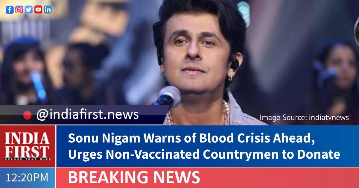 Singer Sonu Nigam urged every non-vaccinated person in India to step forward and donate blood because he says there is will be a severe blood crisis amid the second wave of Covid-19.