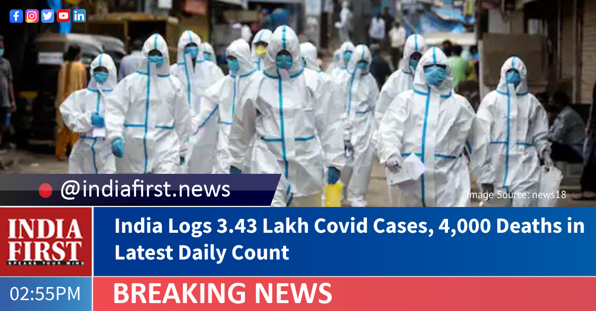 Witnessing a decline, India today reported 3,43,144 new Covid cases and 4,000 fatalities, the Union Ministry of Health and Family Welfare said.