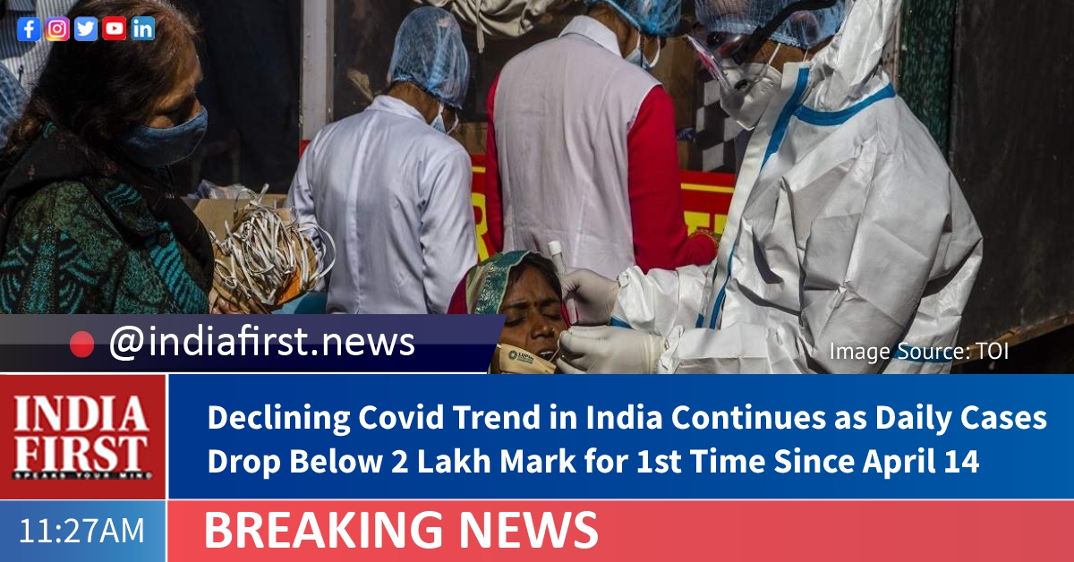 India’s daily coronavirus cases fell below 2-lakh mark for the first time since April 14. The country reported 1,96,427 fresh Covid cases today and 3,511 fatalities, Union Health and Family Welfare Ministry said.