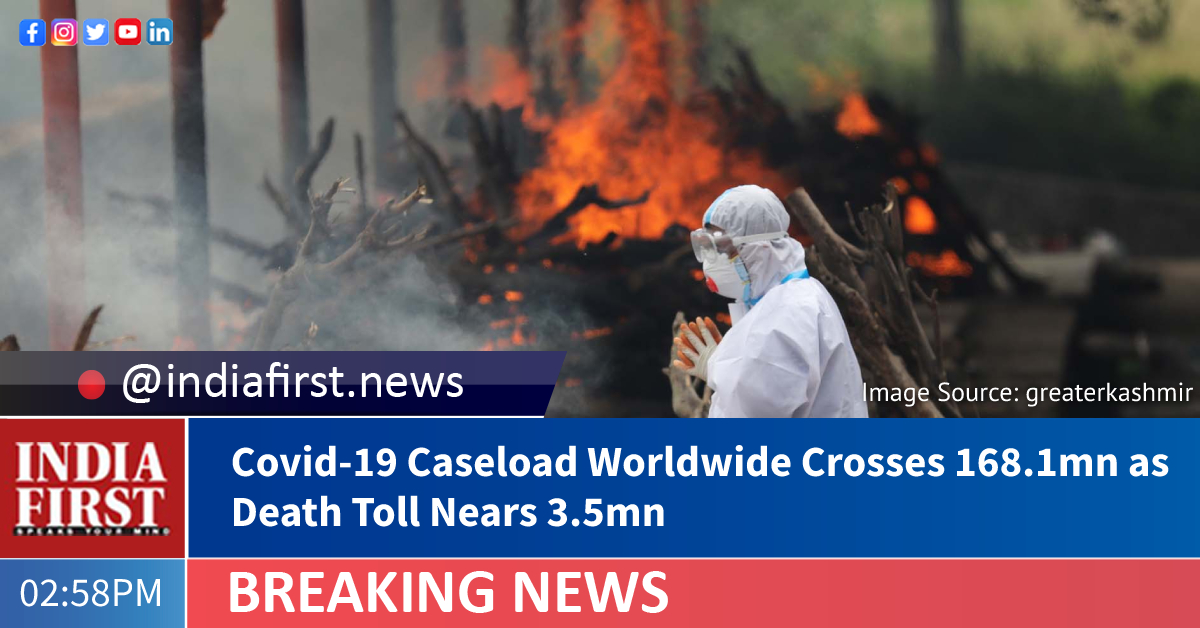 The overall global Covid-19 caseload has topped 168.1 million, while the deaths have surged to more than 3.49 million, according to the Johns Hopkins University.
