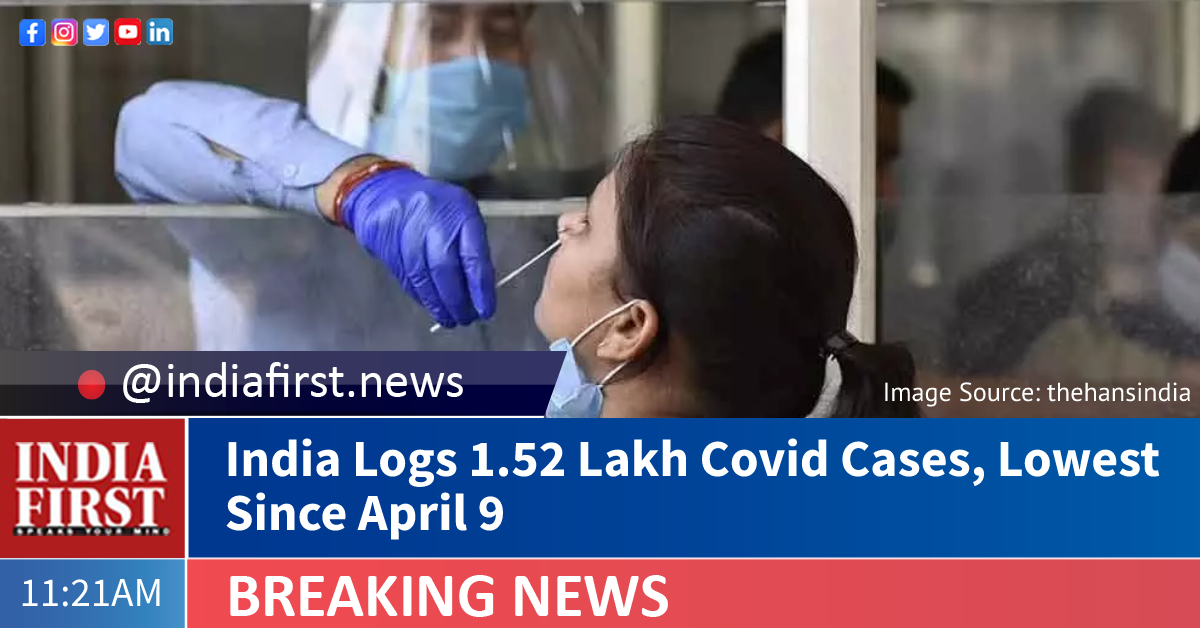 India logged less than 2 lakh Covid-19 cases third day in a row, with 1,52,734 new infections reported in the last 24 hours, when 3,128 more succumbed to the pandemic, the Union Health and Family Welfare Ministry said today.