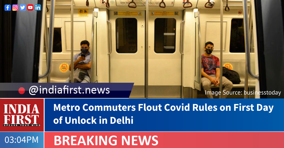 On the very first day Delhi Metro rail services resumed its operations after nearly a month of complete suspension due to the raging second wave of Covid -19 pandemic, commuters today were seen breaking norms put in place.