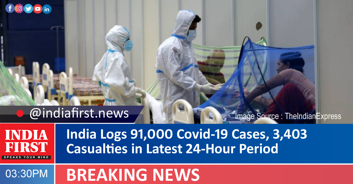 India recorded 91,702 new Covid cases as 3,403 people succumbed to the virus in last 24 hours, according to data released by the Union Health and Family Welfare Ministry today.