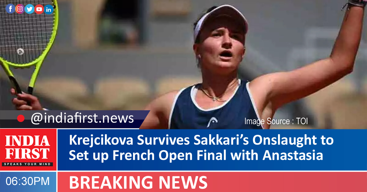 Unseeded Czech Barbora Krejcikova pulled off a remarkable upset by outlasting No.17 seed Maria Sakkari 7-5, 4-6, 9-7 in a French Open women’s semi-final match to reach her first Grand Slam final yesterday.