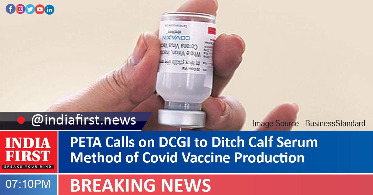 People for the Ethical Treatment of Animals (PETA) India today requested the Drugs Controller General of India (DCGI) to replace Newborn Calf Serum (NBCS) with animal-free chemical solution, in the production of the Covid-19 vaccine, Covaxin.