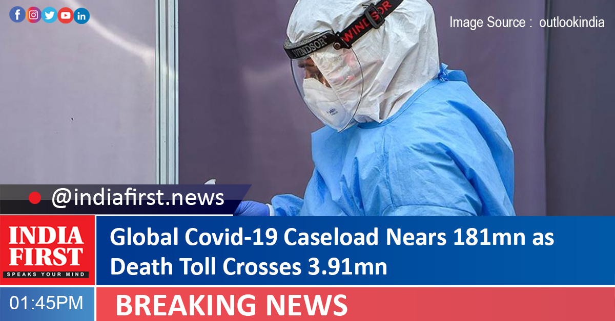 The overall global Covid-19 caseload has topped 180.7 million, while the deaths have surged to more than 3.91 million, according to the Johns Hopkins University.