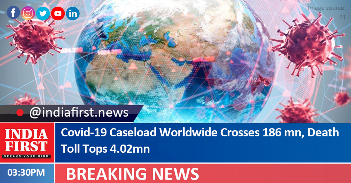 The overall global Covid-19 caseload has topped 186 million, while the deaths have surged to more than 4.02 million and vaccinations soared to over 3.41 billion, according to the Johns Hopkins University.