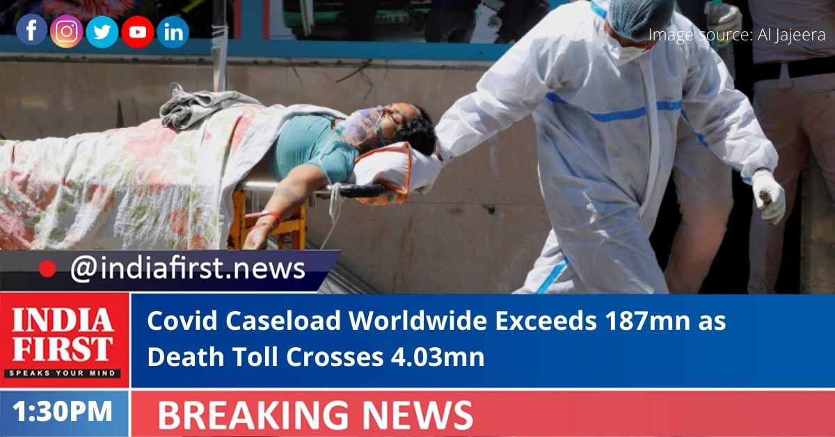 The overall global Covid-19 caseload has topped 187 million, while the deaths have surged to more than 4.03 million and vaccinations soared to over 3.46 billion, according to the Johns Hopkins University.