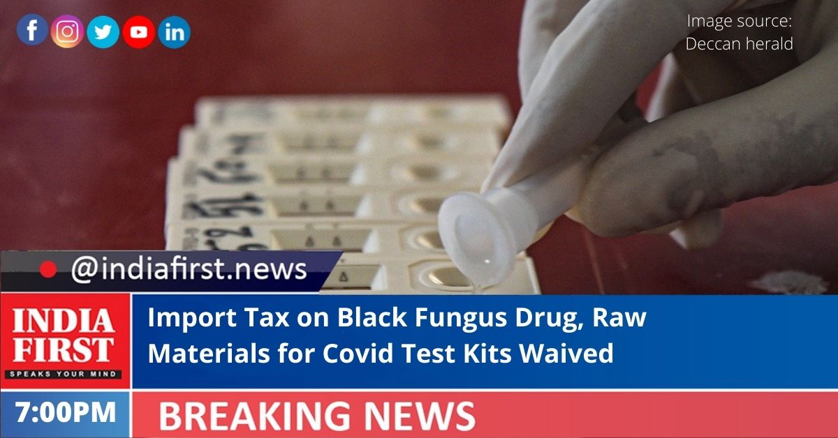 A notification issued by the Department of Revenue said that the basic customs duty exemption on the import of raw materials for manufacturing Covid-19 test kits will be in place till September 30, and exemption for certain APIs used to produce Amphotericin-B, used in the treatment of Mucormycosis, commonly called Black Fungus till August 31.