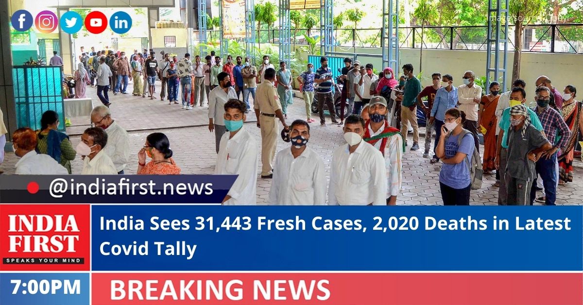 India reported 31,443 new Covid-19 cases in the last 24 hours, which is the lowest in the past 118 days and 2,020 deaths, said the Union Health and Family Welfare Ministry today.