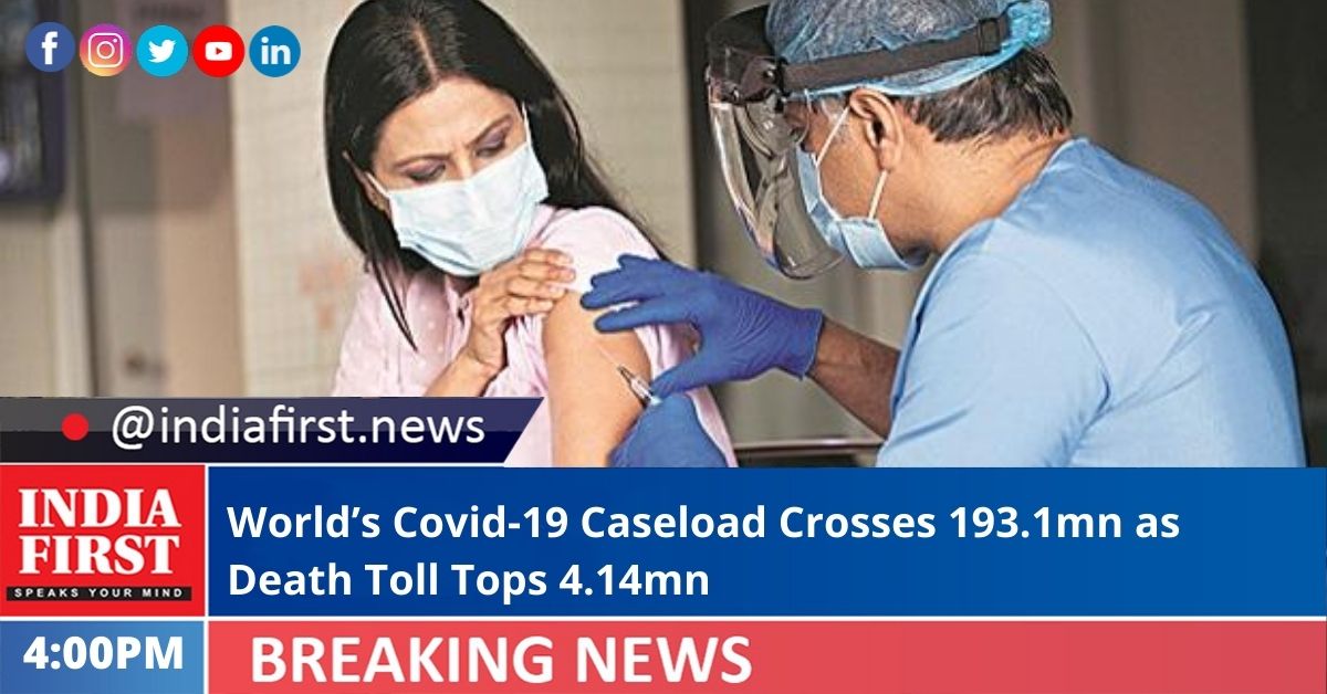 The overall global Covid-19 caseload has topped 193.1 million, while the deaths have surged to more than 4.14 million and vaccinations soared to over 3.78 billion, according to the Johns Hopkins University.
