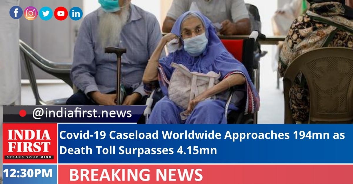The overall global Covid-19 caseload has topped 193.6 million, while the deaths have surged to more than 4.15 million and vaccinations soared to over 3.81 billion, according to the Johns Hopkins University.