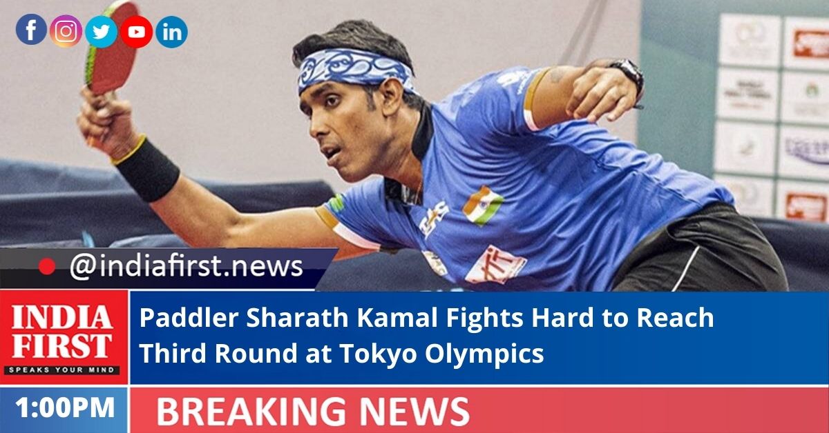 India’s Achanta Sharath Kamal reached the third round of the men’s singles table tennis competition, fighting back from a game down to beat Tiago Apolonia of Portugal 4-2 in 49 minutes at the Tokyo Olympics today.