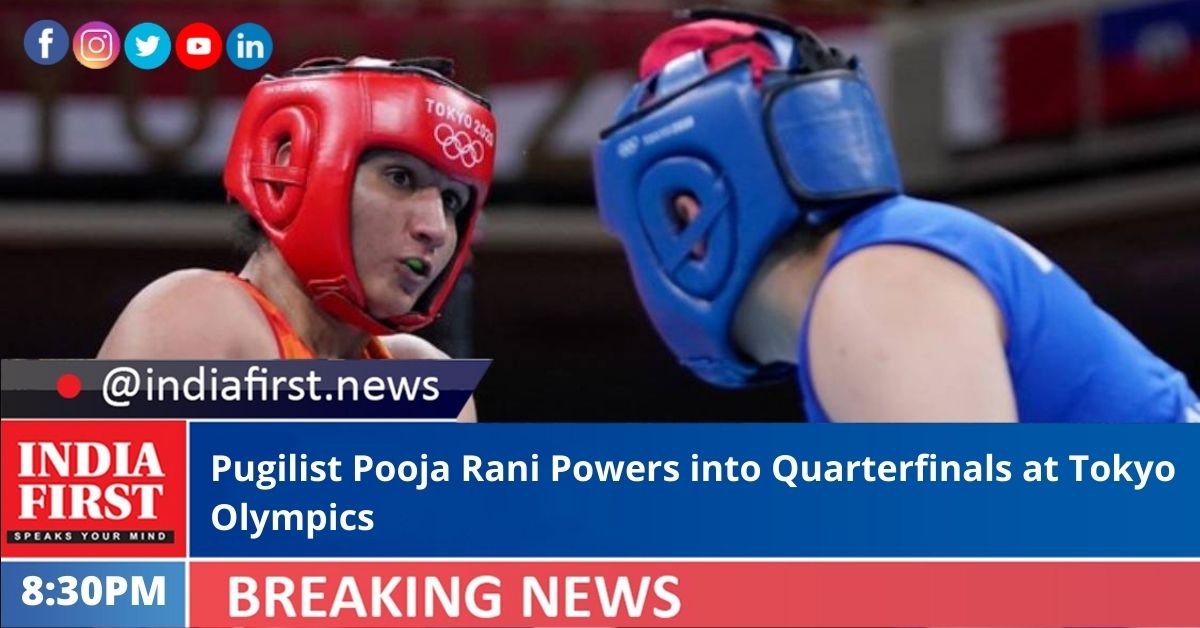 Boxer Pooja Rani stormed into the quarterfinals in the women’s middle-weight category (69-75 kg) after beating Ichrak Chaib of Algeria 5-0.