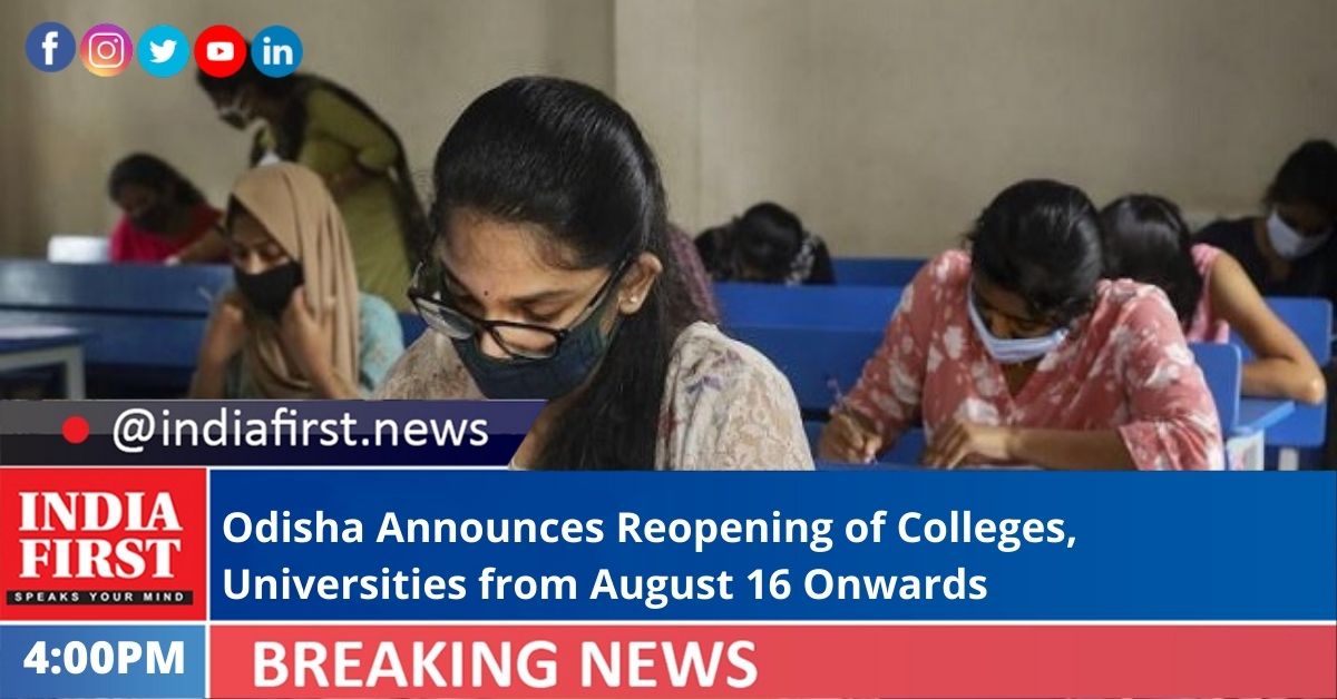 After reopening schools for Class 10 and 12 students, the Odisha government has decided to reopen universities and colleges for physical classroom teaching from August 16.