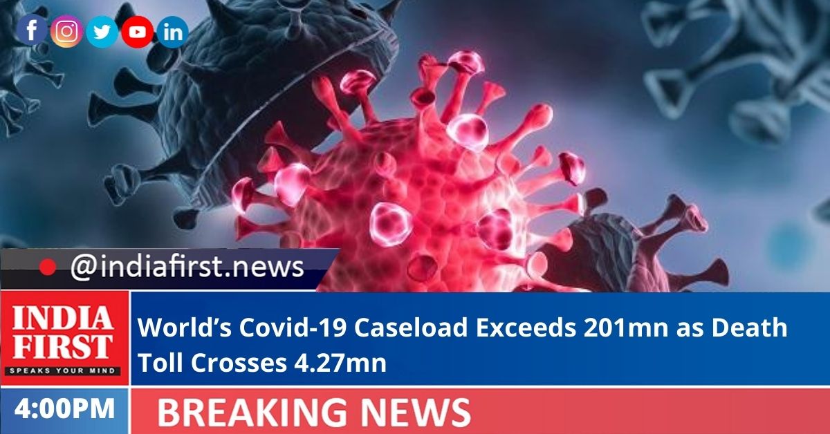 The global coronavirus caseload has topped 201 million, while the deaths have surged to more than 4.27 million and vaccinations soared to over 4.34 billion, according to the Johns Hopkins University.
