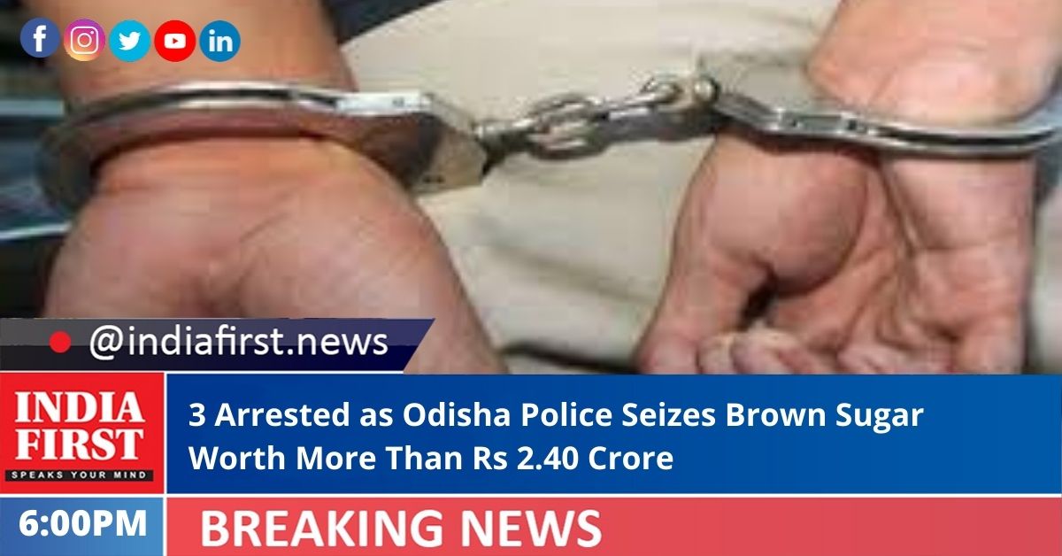 The Odisha police today said it has seized 2,402 grams of brown sugar worth over Rs 2.40 crore and arrested three drug peddlers.