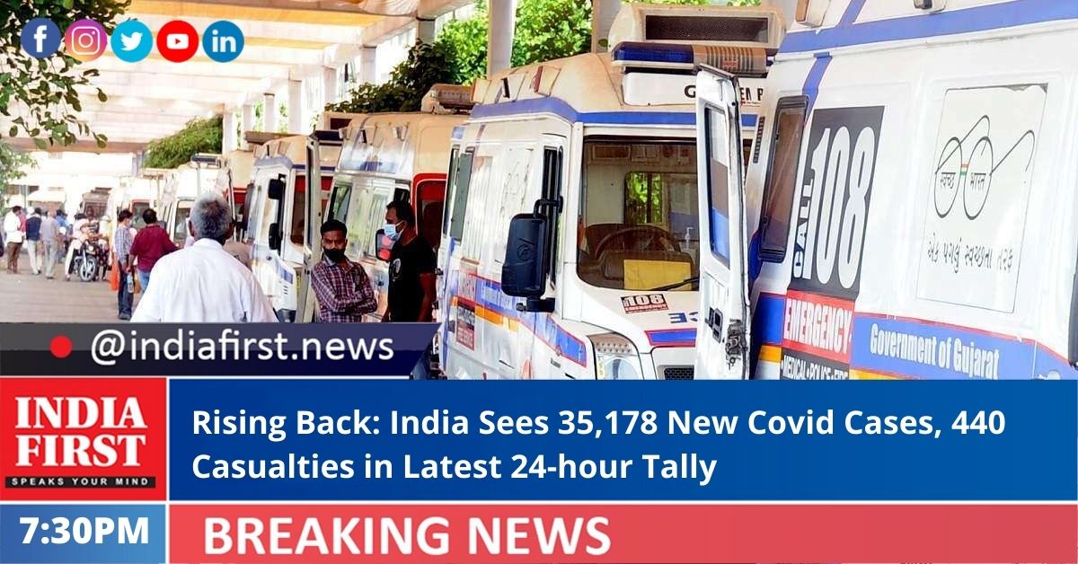 India has again registered growth in the daily Covid-19 cases and reported a total of 35,178 fresh cases in the past 24 hours today.
