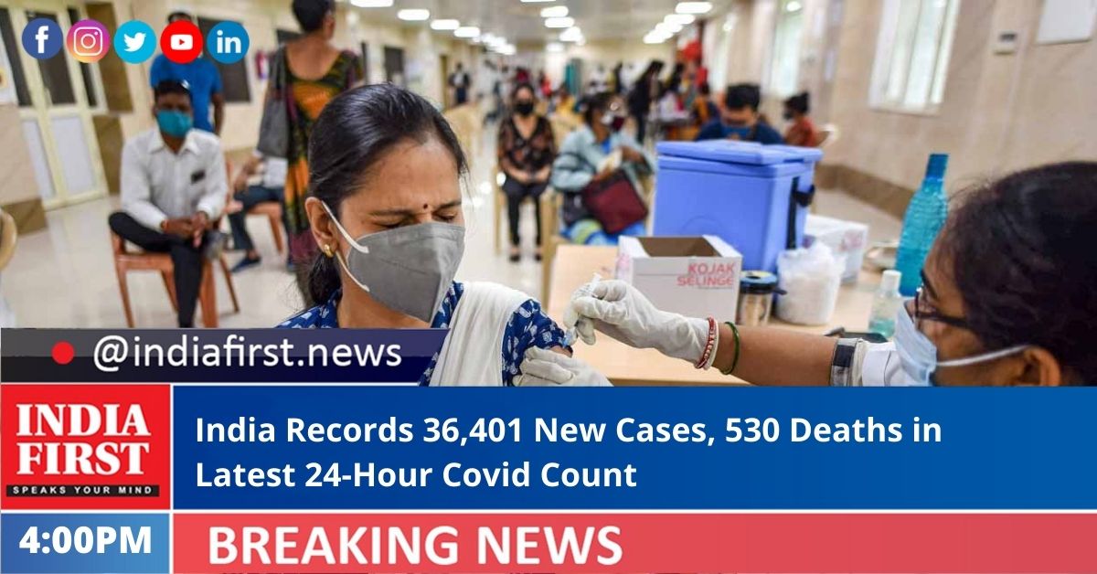 India today registered a rise in single-day caseload and and reported a total of 36,401 fresh cases in the past 24 hrs. A total of 530 deaths were also reported in the same time span, pushing the death toll due to Covid-19 to 4,33,049, said the Ministry of Health and Family Welfare.