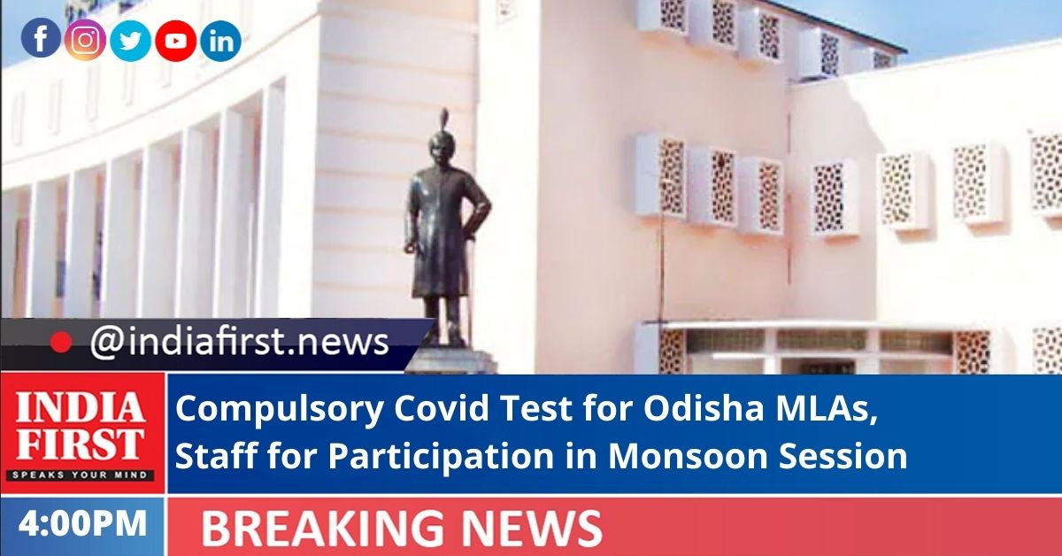 In view of prevailing Covid-19 situation, all legislators and their personal staff will undergo RTPCR test for the Monsoon session of Odisha Assembly beginning from September 1.