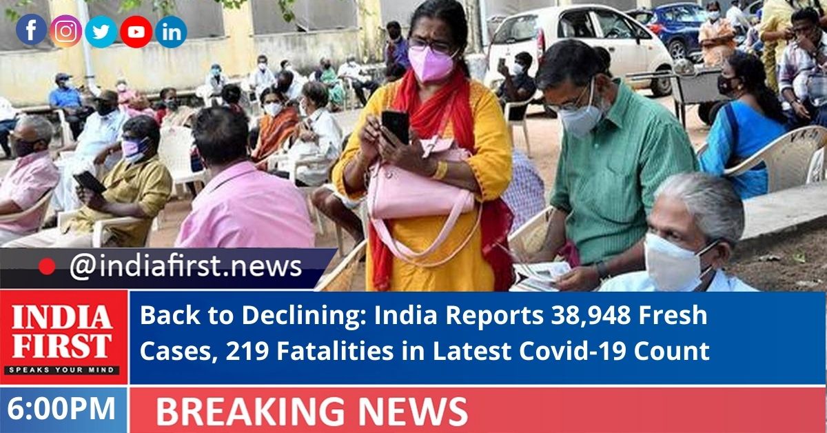 Back to Declining: India Reports 38,948 Fresh Cases, 219 Fatalities in Latest Covid-19 Count