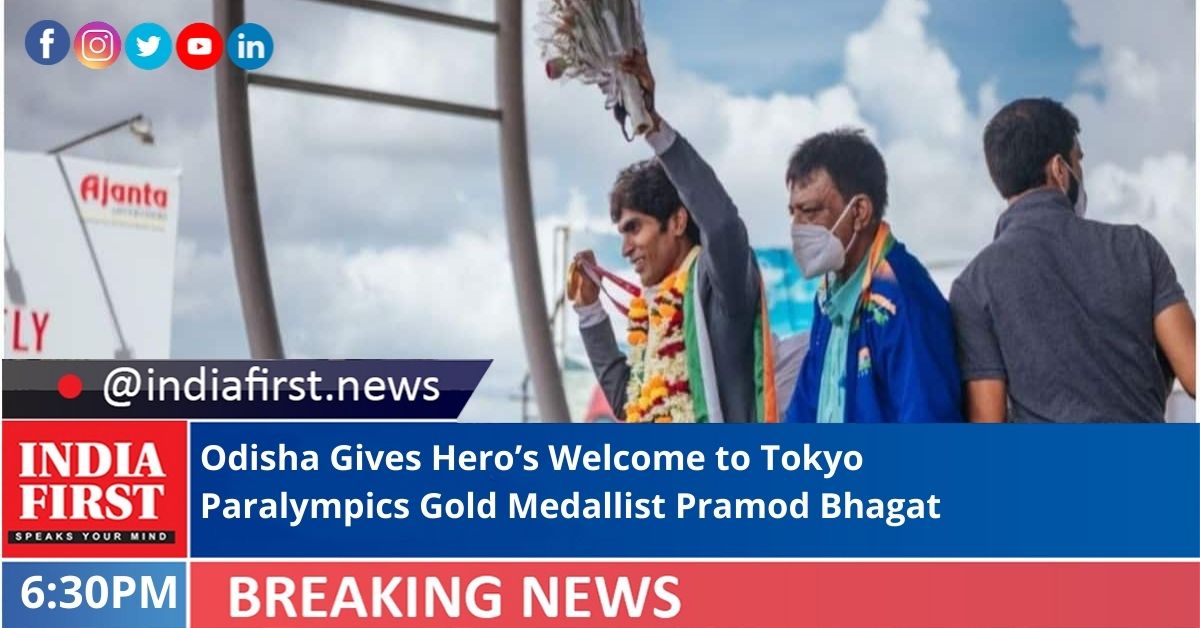 After winning a gold medal at the Tokyo Paralympics 2020, ace shuttler Pramod Bhagat returned to his home state, Odisha on today afternoon.