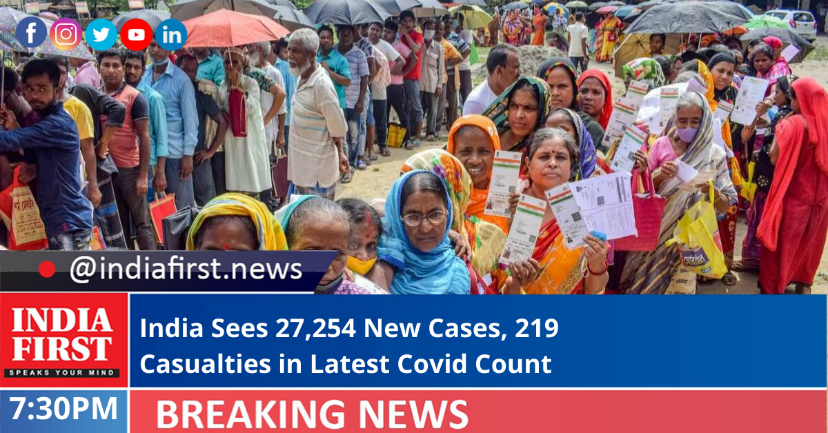 India witnessed a slight dip in new Covid cases yet again as in the last 24 hours 27,254 fresh cases were registered, the Ministry of Health and Family Affairs said today.