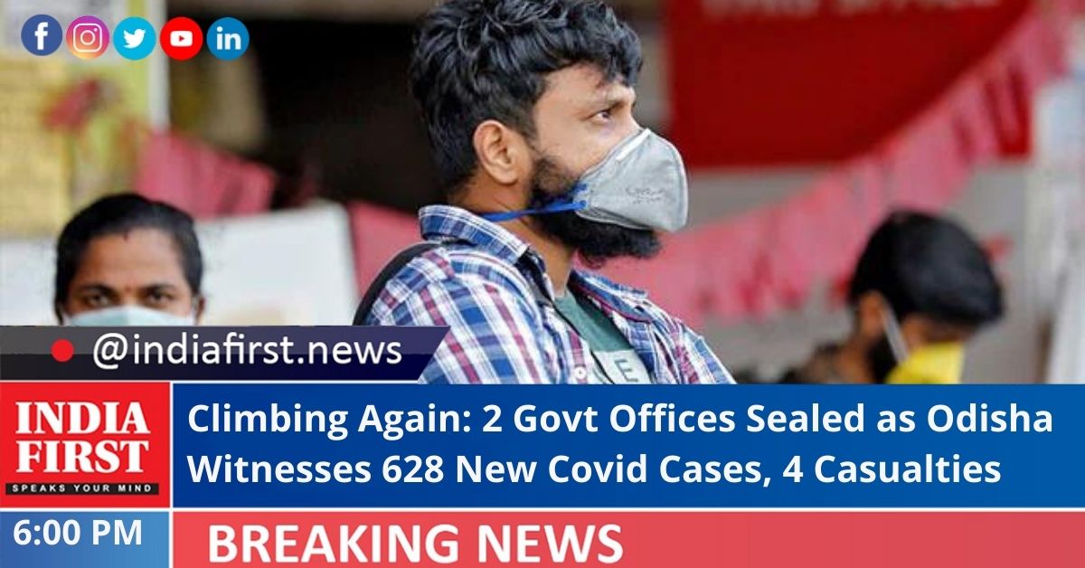 Odisha has recorded 628 fresh Covid-19 cases pushing the tally to 10,18,926, and two government offices were closed for two days after five cases were reported from the employees, officials said.