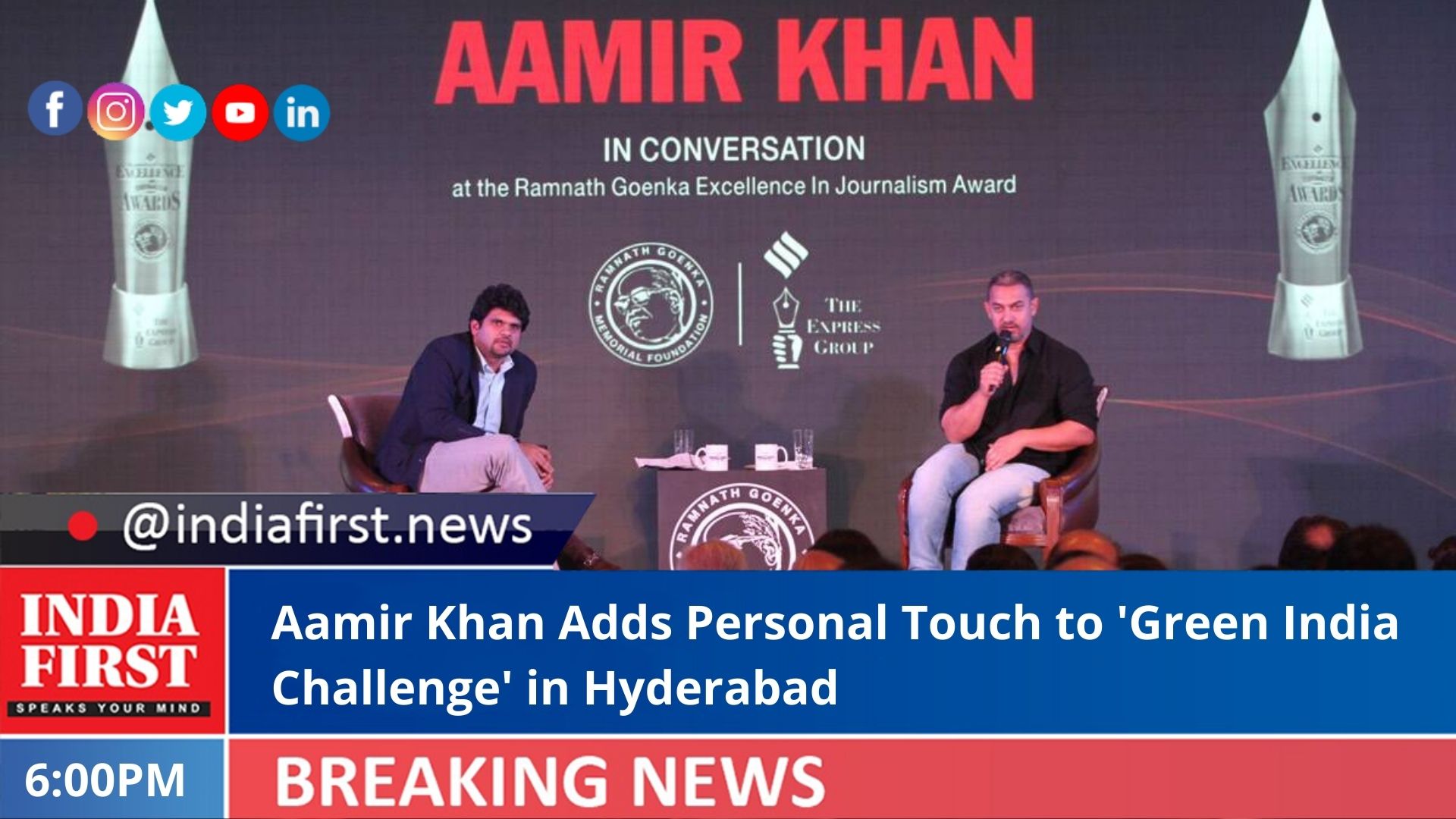 Aamir Khan praised the efforts of Santosh Kumar in taking forward the Green India Challenge and appealed to people to come forward for actively participating in the plantation initiative.