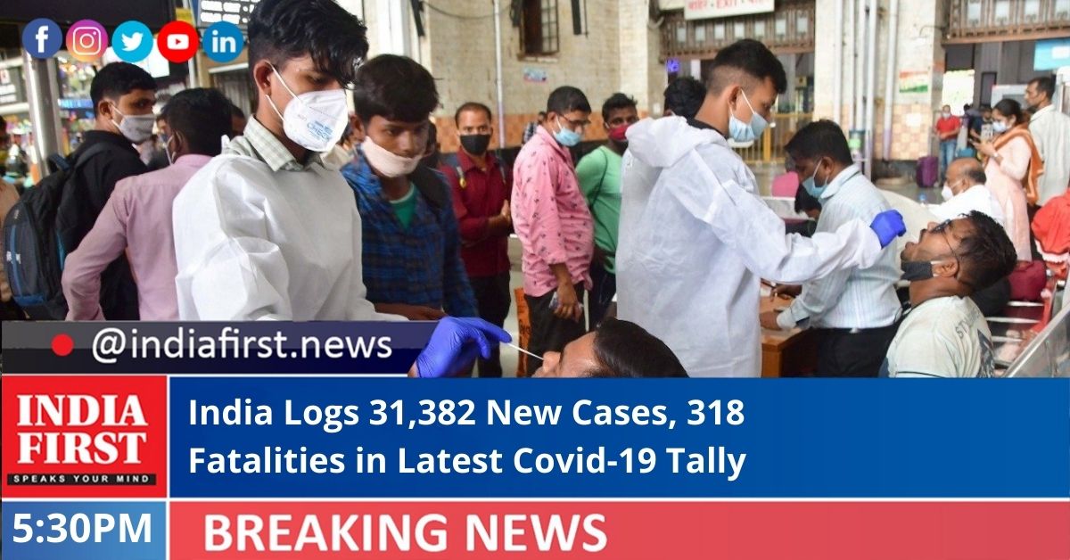 India reported 31,382 new Covid-19 cases in the last 24 hours, even as the active cases declined to its lowest in 188 days, according to the Union Health Ministry data updated today.
