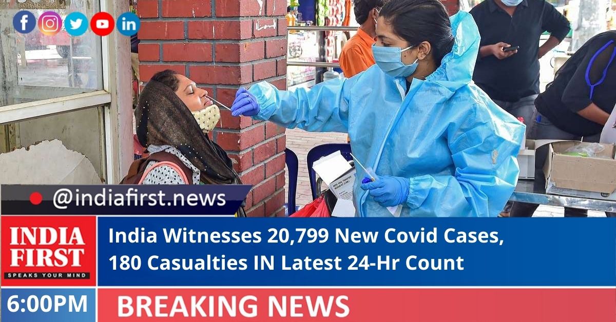 In the past 24 hours, India reported a total of 20,799 fresh Covid-19 cases, as well as 180 deaths, according to the latest report issued by the Union Health Ministry today.