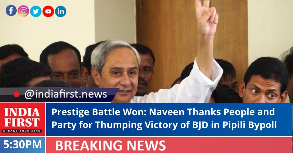 Chief Minister and BJD President Naveen Patnaik thanked the people of Pipili area for their support to his party. He also congratulated his party workers and leaders for the victory.