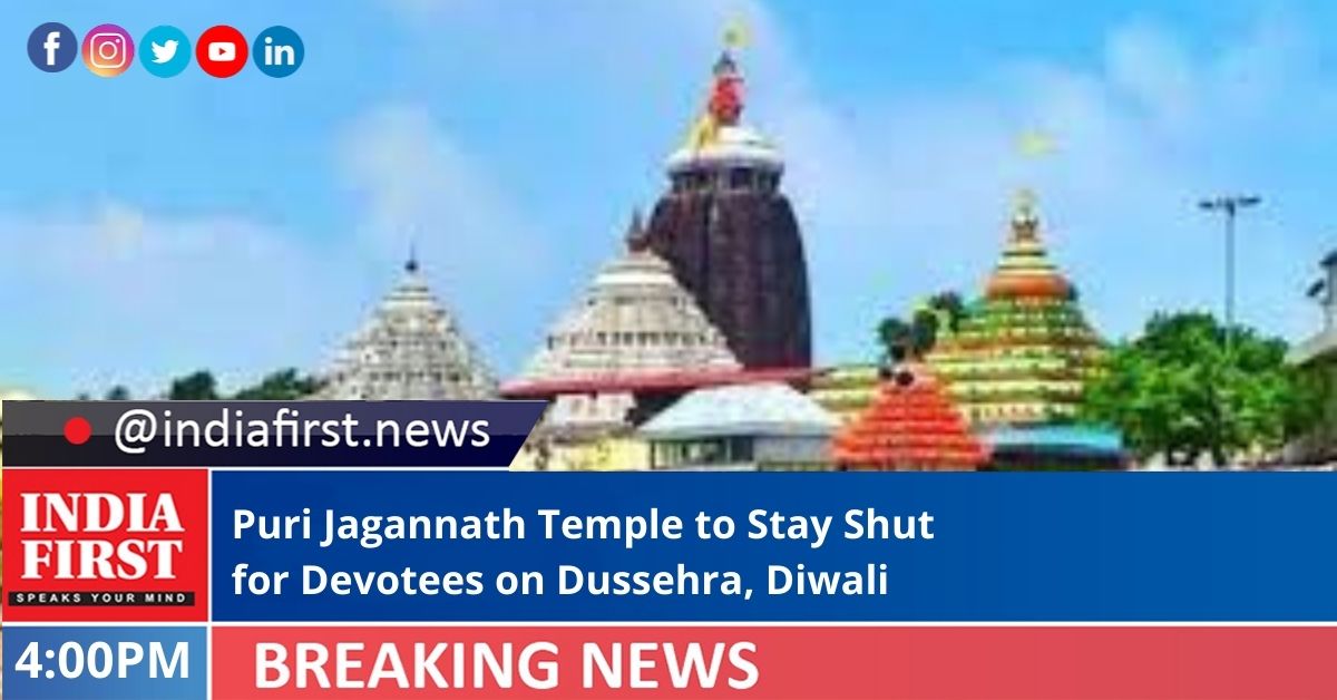The Lord Jagannath Temple in Odisha’s Puri will remain closed for devotees on Dussehra (October 15) and Diwali (November 4), the temple administration said today.