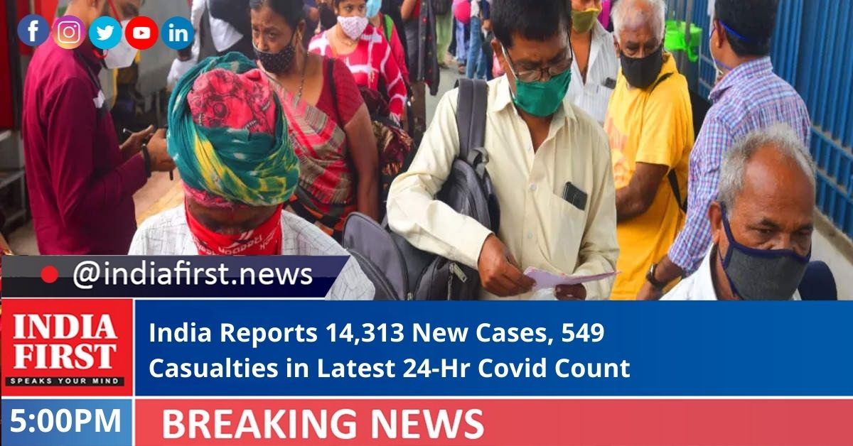 In the last 24 hours, India registered 14,313 fresh Covid-19 cases and 549 deaths, the Union Health Ministry said today.