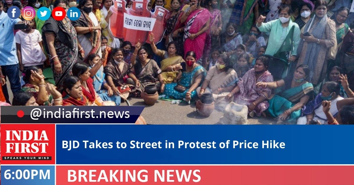 Naveen Patnaik-led Biju Janata Dal (BJD) today staged a protest near Raj Bhavan in Bhubaneswar over increasing prices of fuel and other essential commodities.