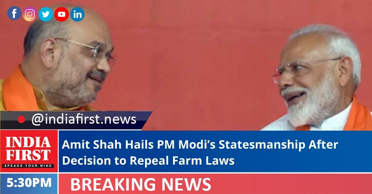 In a series of tweets, Shah said, “PM @narendramodi’s announcement relating to the farm laws is a welcome and statesmanlike move. As the Prime Minister pointed out in his address, the Government of India will keep serving our farmers and always support them in their endeavours.”