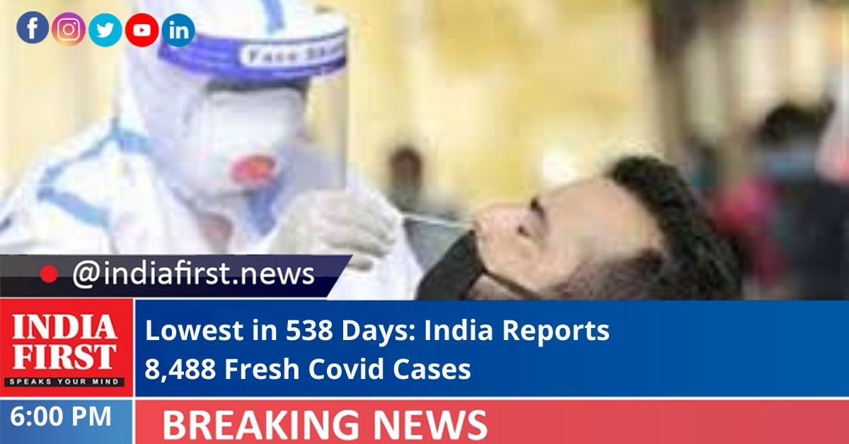In the last 24 hours, India registered 8,488 new coronavirus cases, the lowest single-day spike in 538 days, the Ministry of Health and Family Welfare said today.