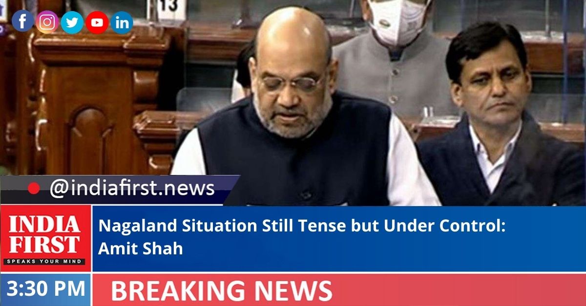 Union Home Minister Amit Shah has said that the situation in Nagaland is critical but it is under control and the government of India expressed deep regrets about the incident that happened in Mon district, Nagaland, and offered condolences to the families of the deceased.