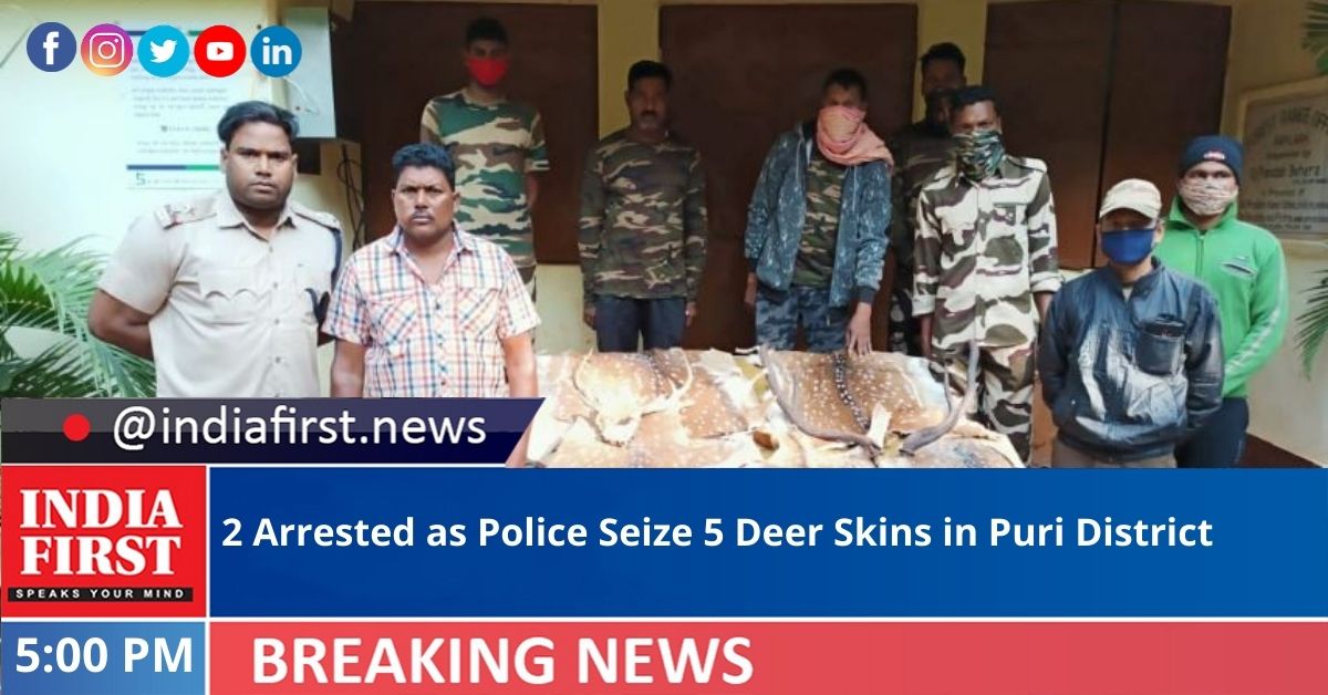 The special task force (STF) of Odisha police has seized five deer skins and arrested two wild life criminals in Puri district, police officials said here on Friday.