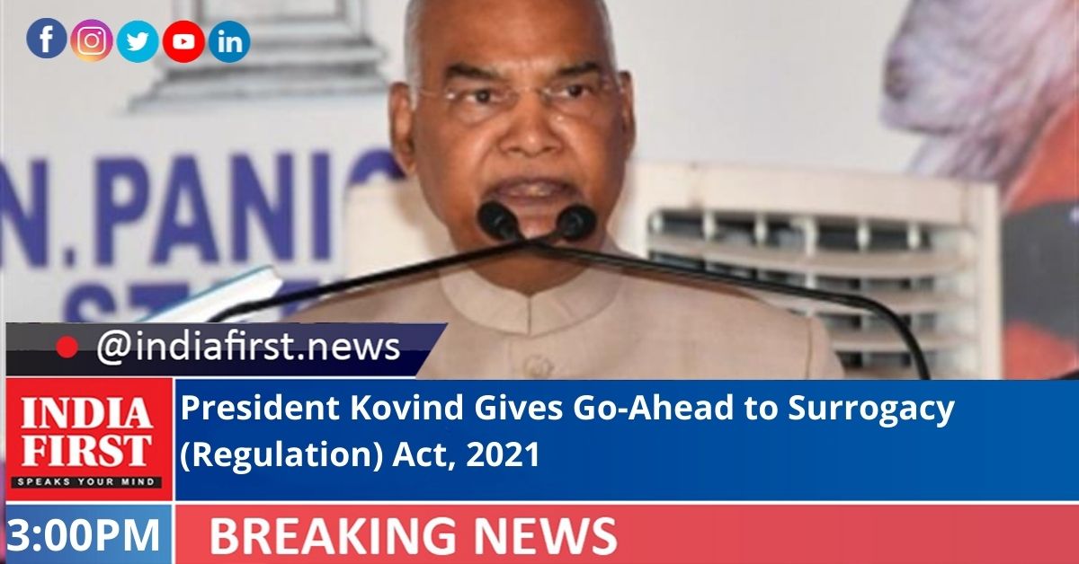 President Ram Nath Kovind has given his assent to the Surrogacy (Regulation) Act, 2021.