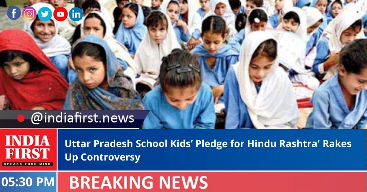 School children in Uttar Pradesh’s Sonbhadra district were reportedly made to take a pledge to make India a ‘Hindu Rashtra’.