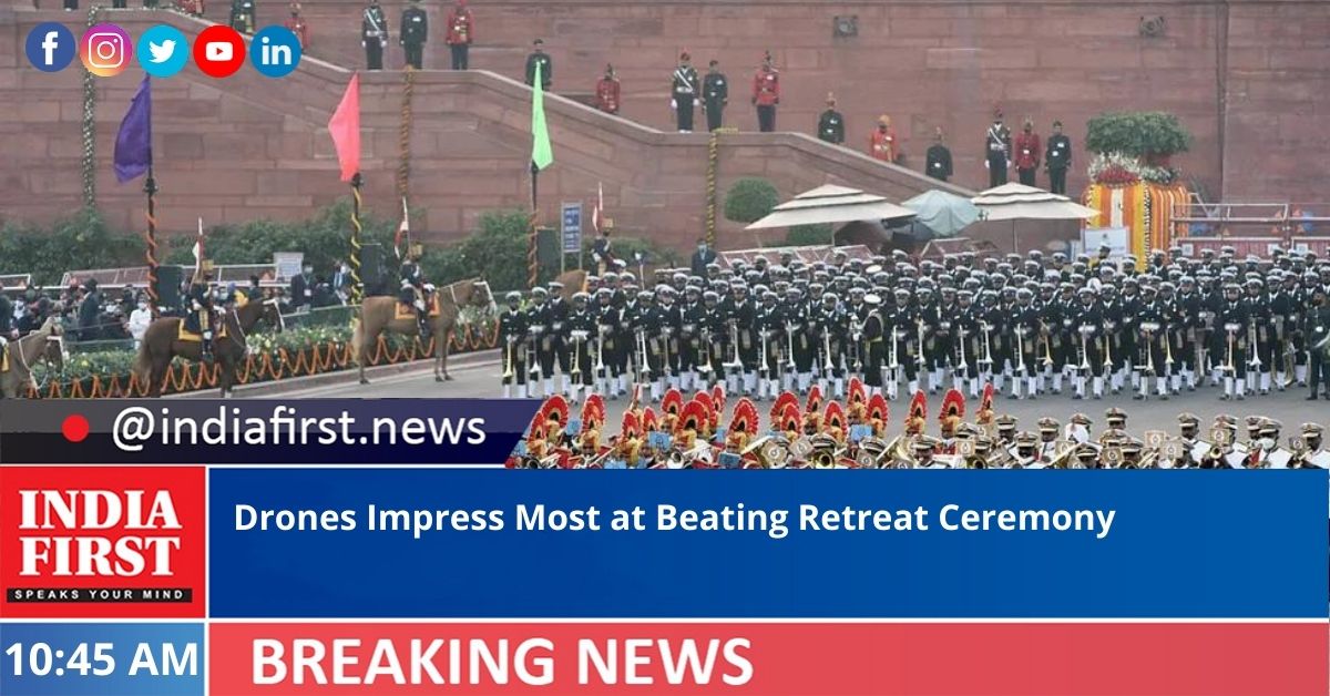 Over 1,000 drones, dazzling in different colours, lit up the sky over the Lutyens’ Delhi on Saturday during the Beating Retreat Ceremony.