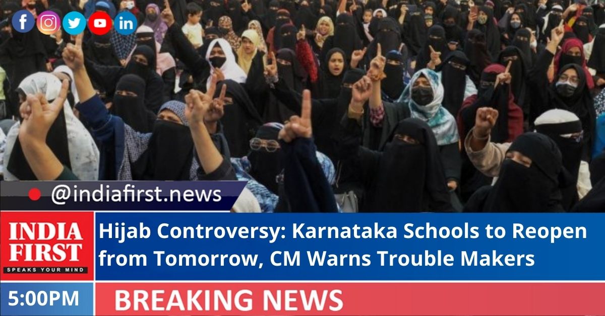Amid hijab row, Karnataka Chief Minister Basavaraj Bommai on Sunday warned trouble makers of legal action as schools up to class 10 are reopening from Monday.