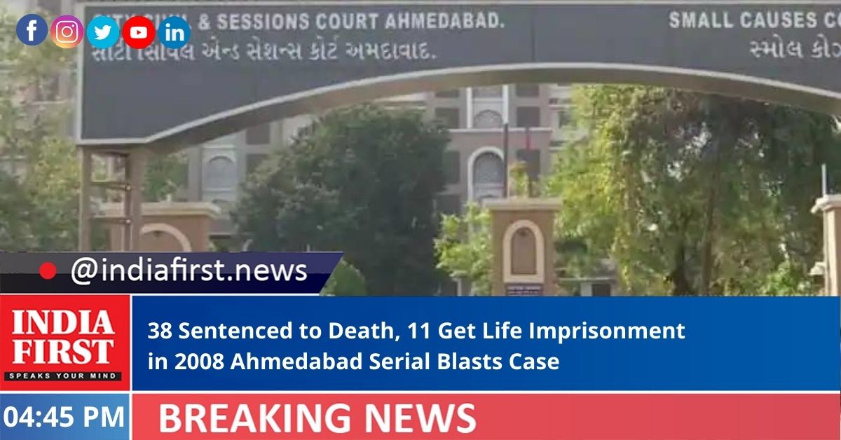 A special court designated for the speedy trial of the 2008 Ahmedabad serial bomb blasts case today sentenced 38 of the 49 convicts to death under the Unlawful Activities Prevention Act (UAPA) and Section 302 of the Indian Penal Code, while 11 others were given life imprisonment.