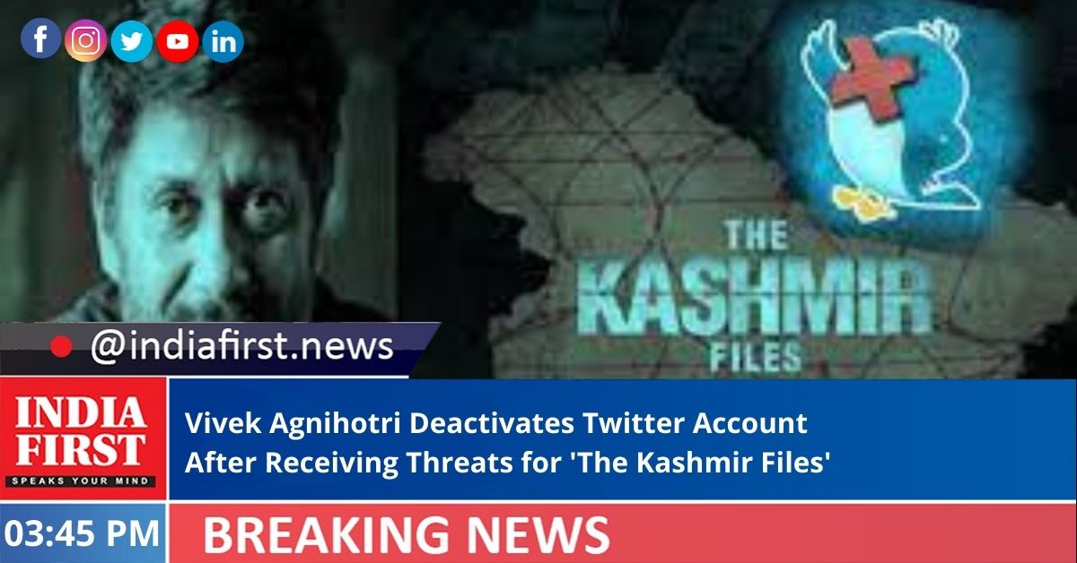 Filmmaker Vivek Ranjan Agnihotri has now deactivated his Twitter account as he is receiving threatening messages to stop the release of his film ‘The Kashmir Files’.