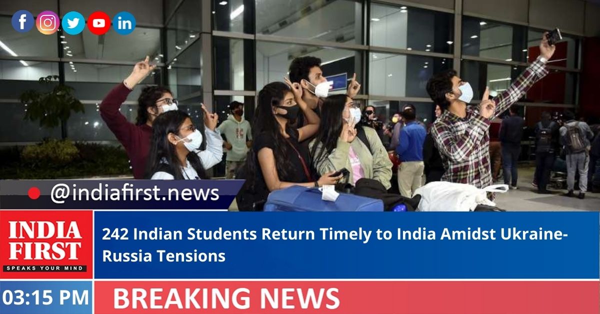 Amid the escalating Russia-Ukraine tensions, 242 Indian students returned safely to India at New Delhi’s Indira Gandhi International airport late yesterday evening and reunited with their parents after India started evacuation operations of Indian citizens living in Ukraine and its adjoining areas.